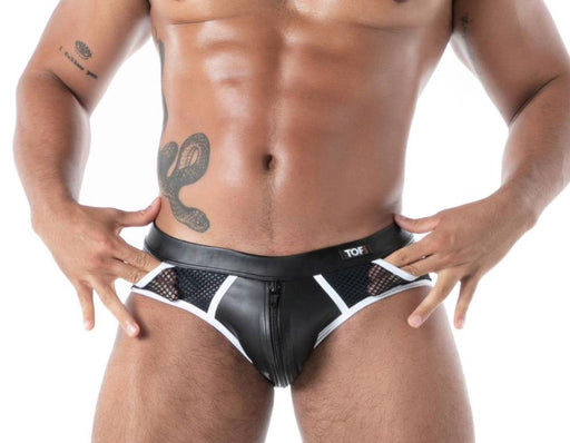 TOF PARIS Kinky Backless Front Zipped Brief Jock Combo Mesh Patch Pockets Bk 32