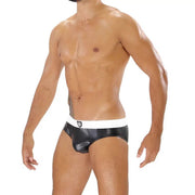 Black n white Fetish briefs in realistic imitation leather stretch microfibre.