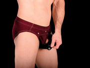 XS SMU Peekaboo Removable Leather Pouch Burgundy Brief H2