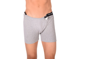 Elastic cotton boxer with a waistband designed especially for ostomy patients.