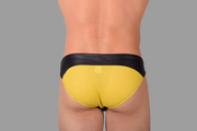 SMU Briefs Eye Grabber Slip luxueux en cuir lacé Noir et Jaune P01003 H5